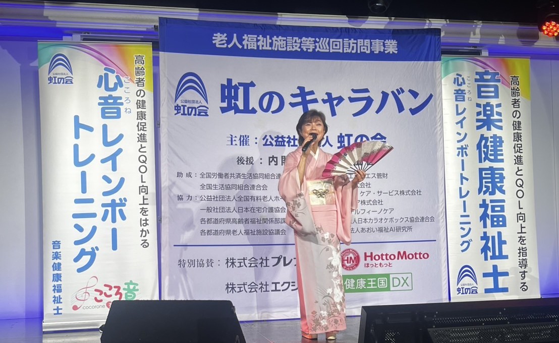 プロ歌手の迫力ある歌声と音楽健康福祉士による運動指導が、楽しいと大好評のオンライン 「虹のキャラバン」。歌手は、#森京子(2/12)、#ふるみまや(3/11)、#海蔵亮太(4/8) の皆さんが出演します。高齢のご利用者様がいる施設が対象で参加費用は、無料。 インターネット環境とZOOMが使用可能な端末さえあれば全国どこからでも視聴可能です。 ぜひ下記URLからお申込みください。